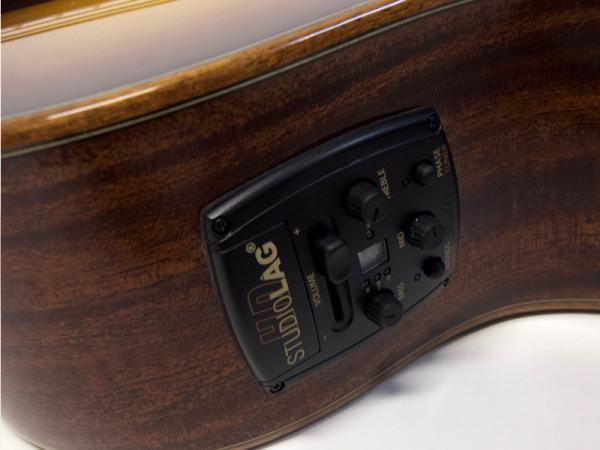 ちょっと小ぶりりのボディはライブでの取り扱いも抜群です。チュナー内臓のプリアンプ搭載、宅録やストリートでも使えます。