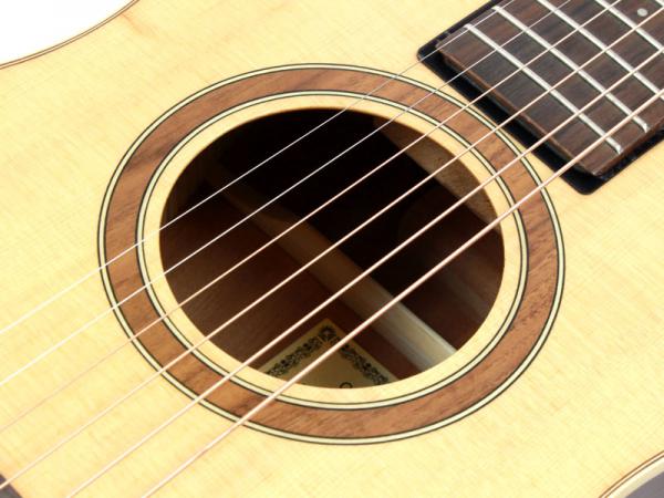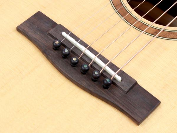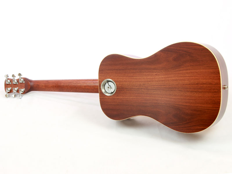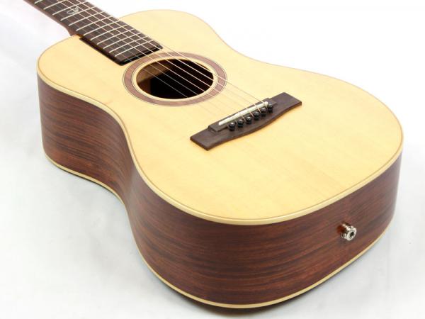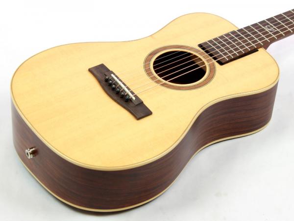 スプルース材単板トップとパーフェロー積層板サイド/バックの仕様で、ギブソンスケールに近い622.3mmスケール、フィンガーピッカーにも弾きやすい44.5mmナット幅の仕様。オヴァンコール材指板&ブリッジにカーボンファイバー補強と効きの良い2wayアジャスタブルロッドが仕込まれたアフリカンマホガニー材ネックと、強度とサウンドに拘った本格的なスペックが魅力となっております。