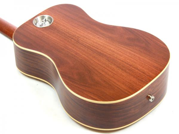 ミニギターに近い小振りで取り回しの良いサイズ感ながら、人間工学に基づいてデザインされた胴厚をアシンメトリーにしたボディによって長時間の演奏にも疲れにくく、サウンドもフルサイズのギターのように豊かに鳴ってくれます。少し本格的なご自宅用のミニギターとしても非常にお薦めです。マホガニー材サイドバックのOF410に比べるとしっかりと低域が鳴ってくれて、より輪郭のハッキリした音色となります。