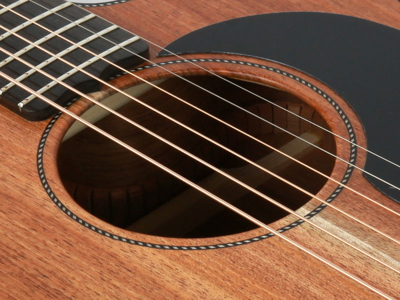 オールマホガニーで制作されたMシリーズがこの度廃盤となり、新たにオーストラリア原産の木材を使用して登場したのがこちらのブラックウッドシリーズ。オールマホに比べて音に厚みが有り、独特のパンチが有ります。音の芯がしっかりしていますので、フィンガースタイルでもピック弾きでもどちらでも良い相性です。