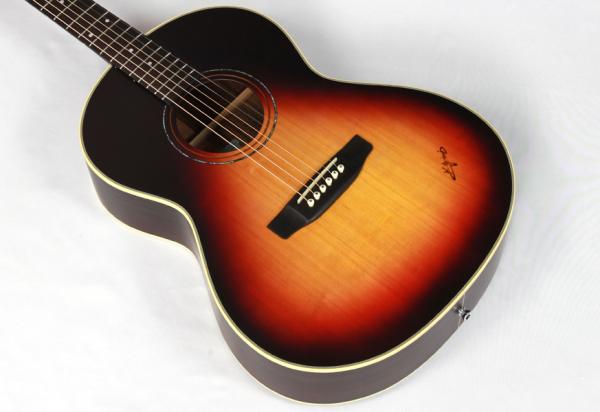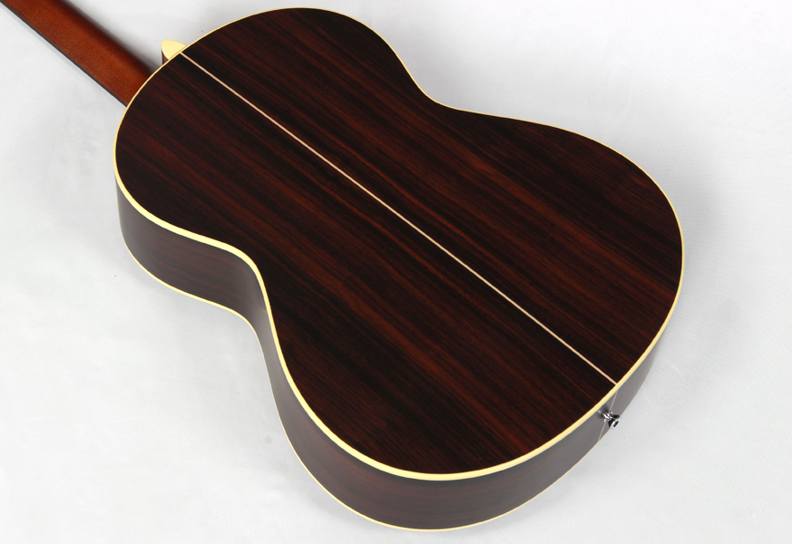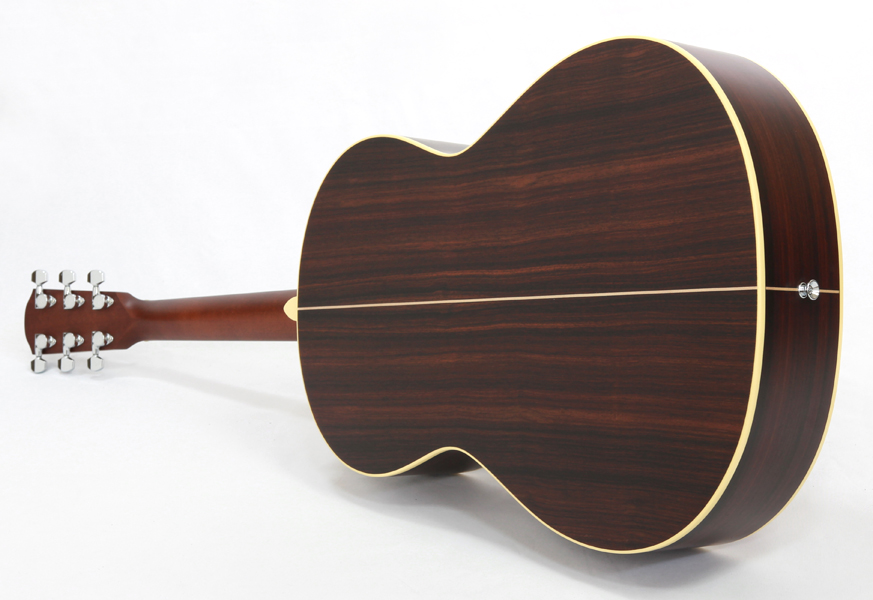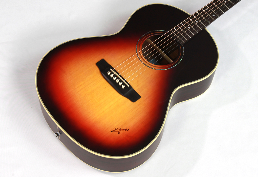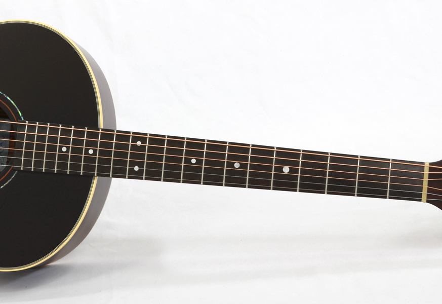 スプルース材単板トップ、ローズウッド材サイド&バック、マホガニー材ネック、エボニー材指板&駒、42mmナット幅、クリアピックガード。優しく歯切れ良い明るめのサウンドは弾き語りや歌モノのバックに相性が良く、使い勝手の良さが特徴です。