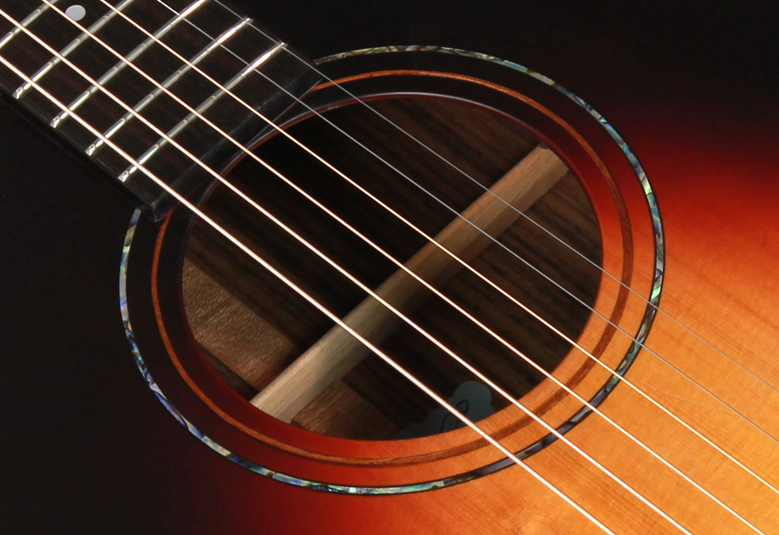 ヤイリギターのオリジナルシェイプで抱え易さと立ち上がりの早さ、豊かな鳴りが共存しております。