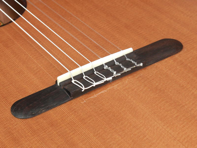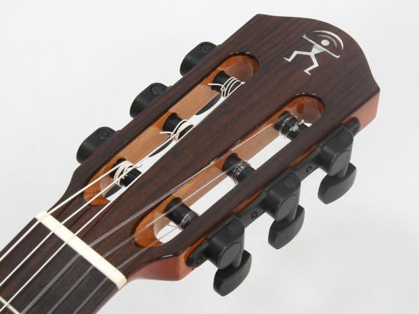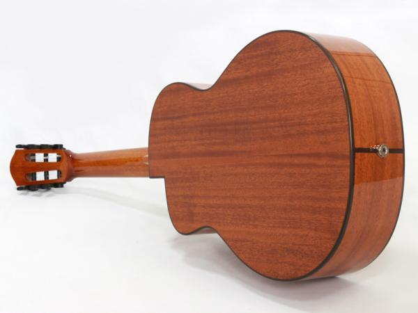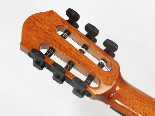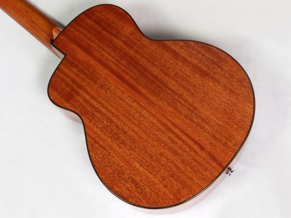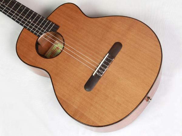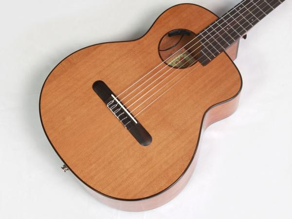 こちらは今大人気となっているミニガットのモデルで、シダー材単板トップ、マホガニー材サイド&バック、マホガニー材ネック、ローズウッド材指板&駒、牛骨ナット&サドル、48mmナット幅、610mmスケール、ローズウッド材バインディング&グロスフィニッシュとお値段以上の上質な見た目、豊かな音色が特徴です。