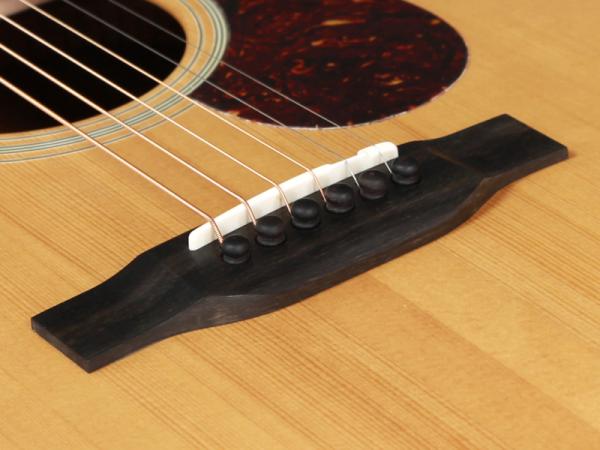 シトカスプルース単板トップ、サペリ単板サイド&バック、マホガニー材ネック、エボニー材指板&ブリッジ44.5mmナット幅、632.5mmスケールの本格派スペックで、マホガニーのような明るい音色が特徴です。