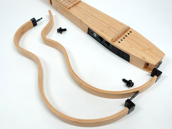 全て竹で構成された折り畳み可能なスマートギター。スチール弦モデル。