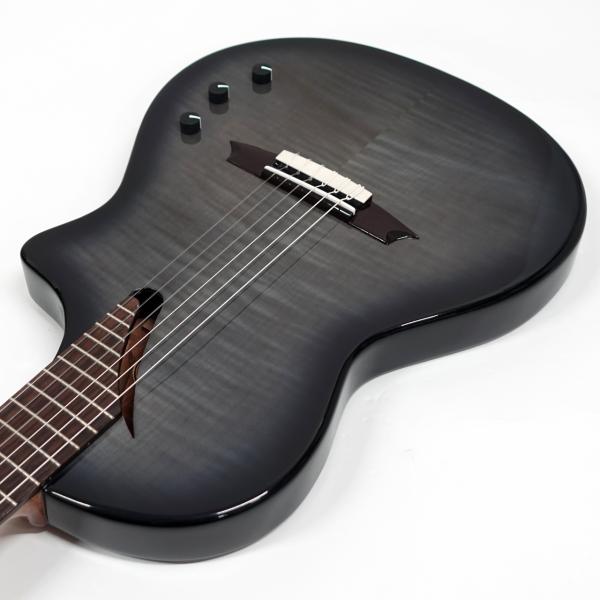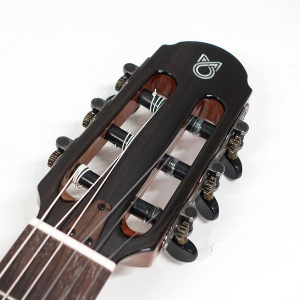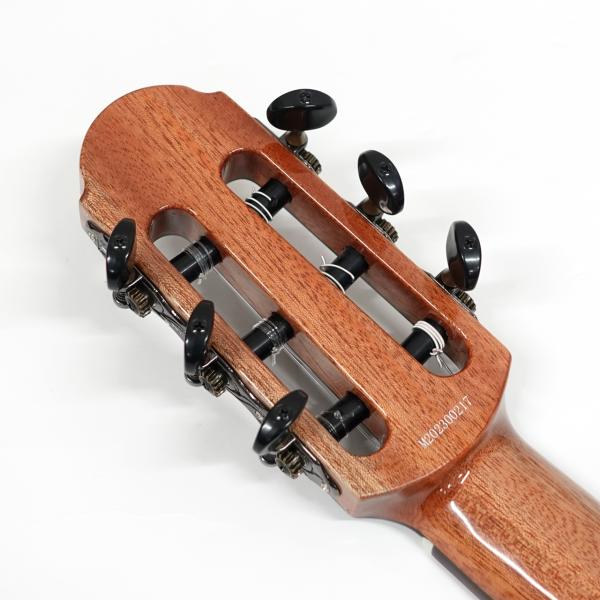 ナット幅は48mmと一般的なガットギターより少し細く、シェイプもかなり薄めのため、ガットギター特有の丸みを帯びたネックシェイプが苦手な方でも弾きやすく、持ち替えもスムーズです。