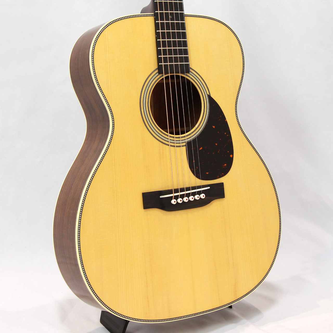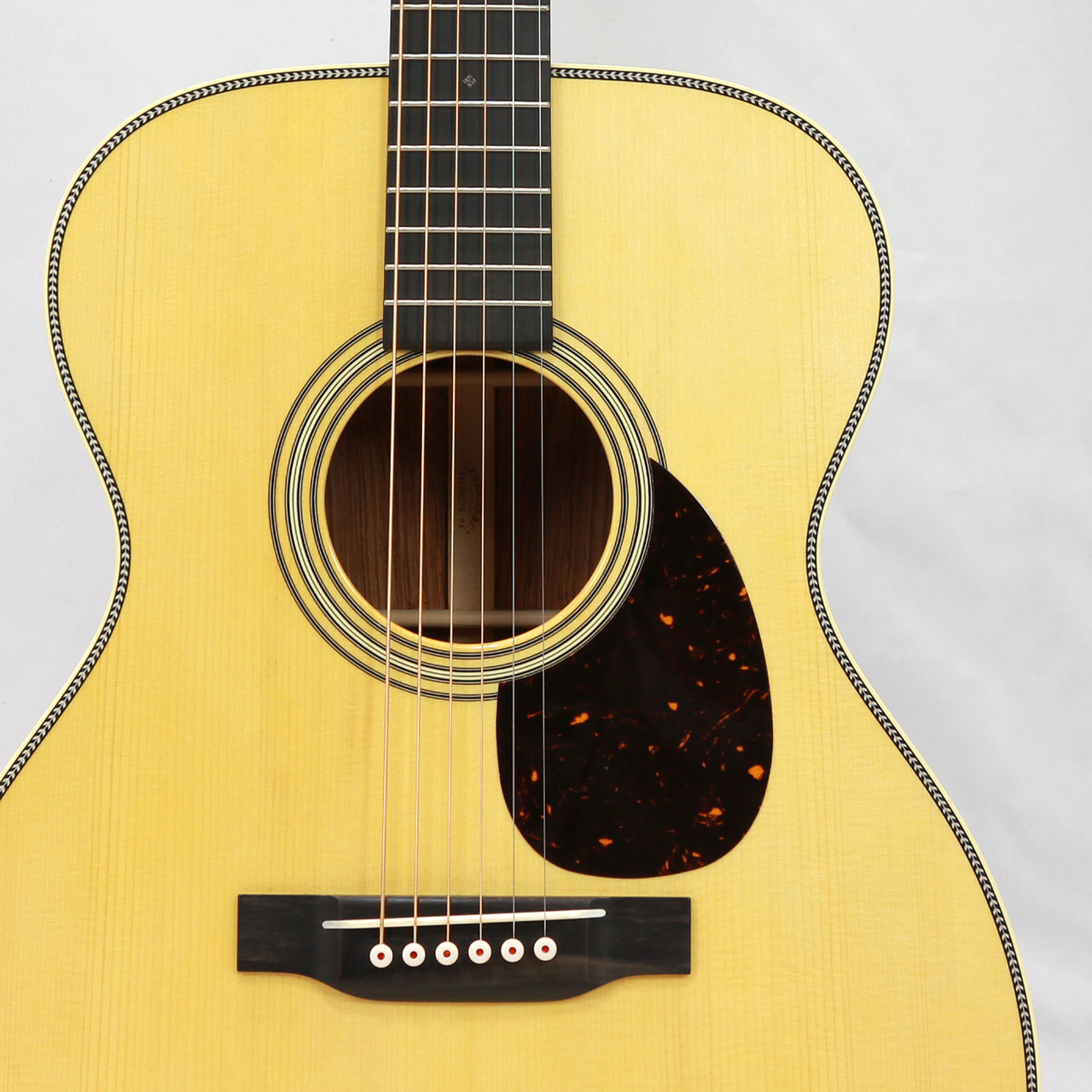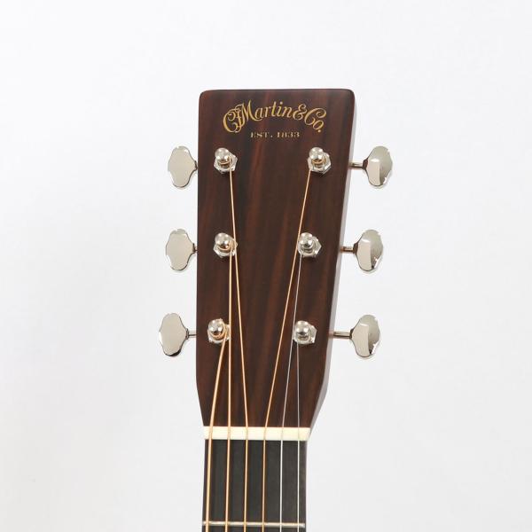 その他スペックとして、マホガニー材ネック、エボニー材指板&駒、アディロンダックスプルース材ブレイシング( Xブレイシング・GEスキャロップド)、ナット幅は44.5mmのModified Low Ovalプロファイルネック(OM-28 Standardと同じ)、MARTINオールドスタイル・デカール、ヘリンボーントリム、ダイアモンド&スクエア指板インレイ、Grover V97ペグ、ロングサドル、エイジングトナーフィニッシュと、ヴィンテージディテール溢れるルックスに仕上がっております。