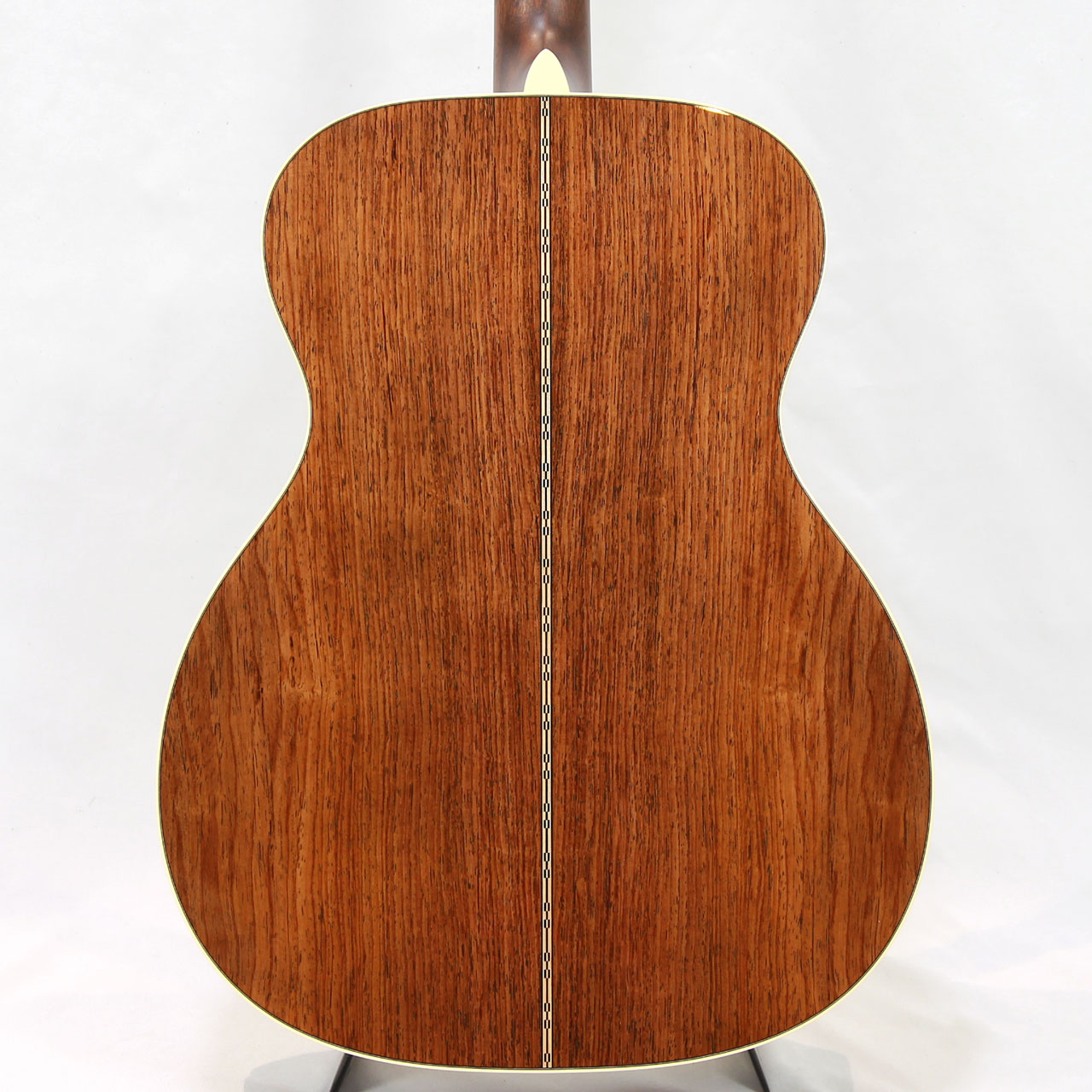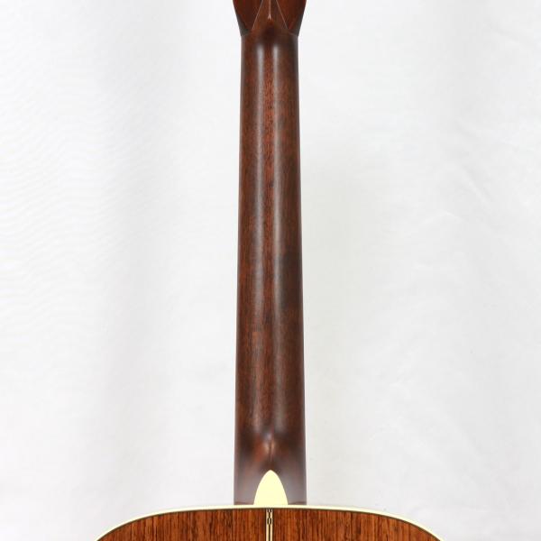トップ材には厳選して頂いたアディロンダックスプルースをチョイス。サイド&バック材にはグアテマラローズウッド材を選定しました。グアテマラローズの良い所は、マダガスカルのように甘くならず、ココボロのように重くない所です。適度に硬質なクリスタル感はマーチンのサウンドと非常に良く合います。倍音感はたっぷりですが重苦しくなく、ギター全体の重量的にも非常に理想的に仕上がっております。