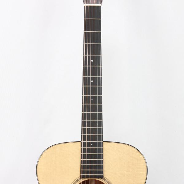 コンパクトで抱えやすいOMボディに、トップ材には厳選されたシトカスプルース、サイド&バック材にも選りすぐりのマホガニーを使用し、ホンジュラスマホガニー材ネック、エボニー材指板&ブリッジ、44.5mmナット幅、647.7mmスケール、エボニー材ブリッジピン、ジリコテ材による天神突板、シャーラー社のGrand Tuneペグと、妥協のないハイスペックな仕様となります。