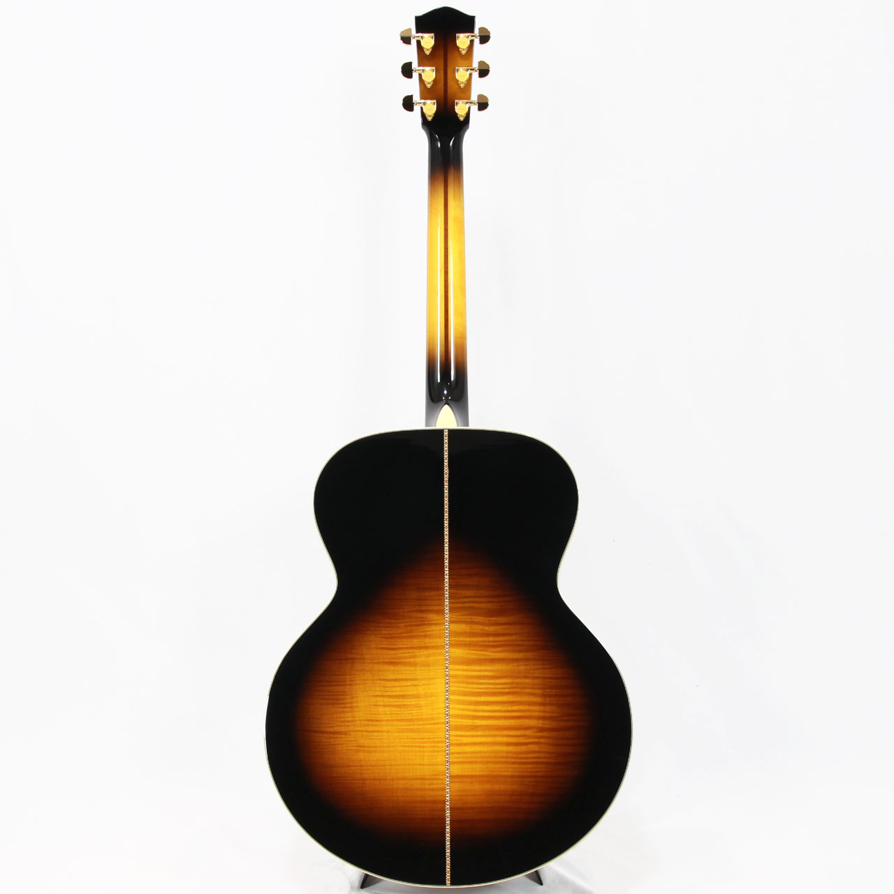 インゲルマンスプルース材トップに、フレイムメイプル材サイド&バック、メイプル材ネック、エボニー材ブリッジ&指板、645mmスケール、44.5mmナット幅、細部に渡って美しいインレイが施された非常に高級感のあるモデルに仕上がっております。