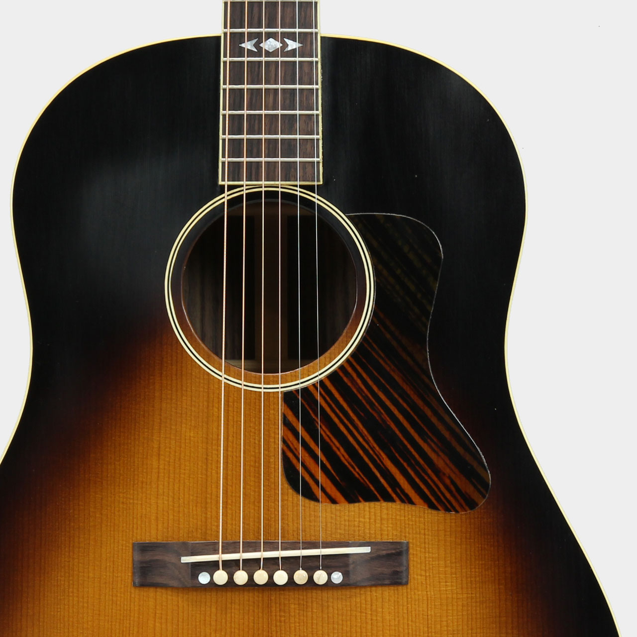 1936年から1939年までの製造時期において生産数が僅少であった影響から、今なおヴィンテージ市場で高い人気を誇り、オリジナルの入手が難しい機種として知られているAdvanced Jumbo。J-45と同じくラウンドショルダーのボディを持ちながら、ワイドブレーシングと648mmのロングスケール仕様によって、ダイナミックでハリのあるパンチの効いたサウンドを出力します。