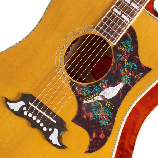 1962年にギブソンの2作目のスクエアショルダー・アコースティックモデルとしてリリースされたGibson Doveは、その特徴的なデザインで広く知られています。エルヴィス・プレスリー、トム・ペティ、ジョン・メレンキャンプ、アレックス・ライフソン、フランク・ハノンなど、多くの著名なプレイヤーに愛用されてきました。