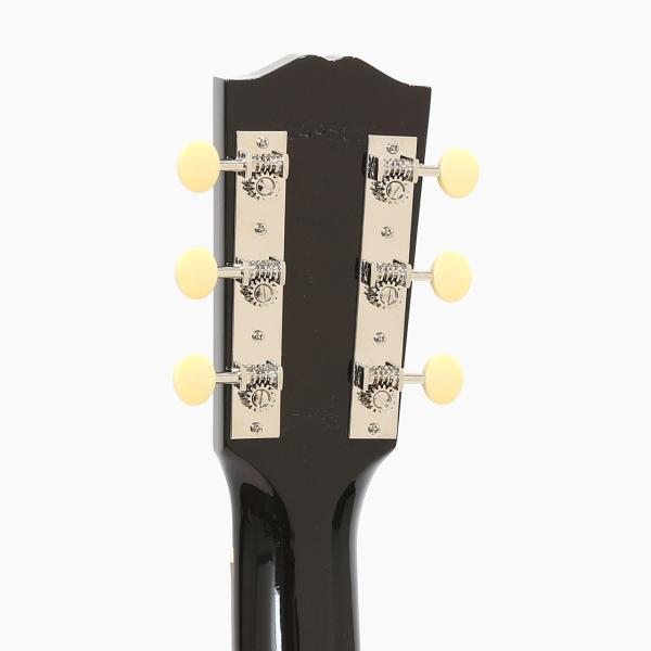 トップ材はシトカスプルースにサイド&バック材はマホガニー、マホガニー材ネック(現代的なスリムテーパー)、タイガーストライプ柄ピックガード、Golden Age(クリームボタン)チューナー、レクタンギュラーブリッジ、ヘッドロゴはスクリプトと、発売当時のルックスに現代のスペックが程よく融合された使い勝手の良いモデルとなっております。