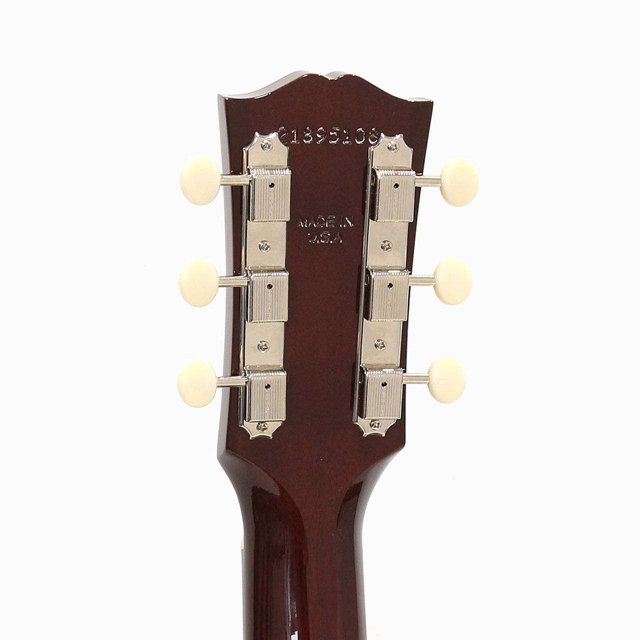 同オリジナルシリーズにラインナップされている60sモデルとは違い、ブリッジは固定式の牛骨スロットイン・サドルとなりますので、低域の効いたサウンドが特徴となります。アジャスタブルブリッジに比べると繊細なタッチでもしっかりローが広がりますので、表現は豊かなモデルとなります。628mmのショートスケールを採用しながらも、しっかりとした迫力ある低音とボディ鳴りがしっかり出力できる部分は唯一無二のギブソンサウンドと言えるでしょう。