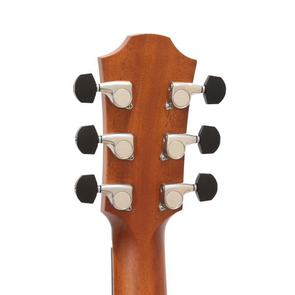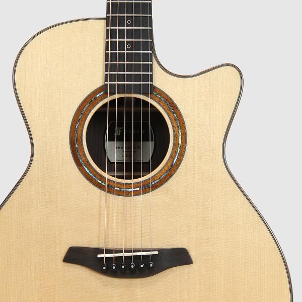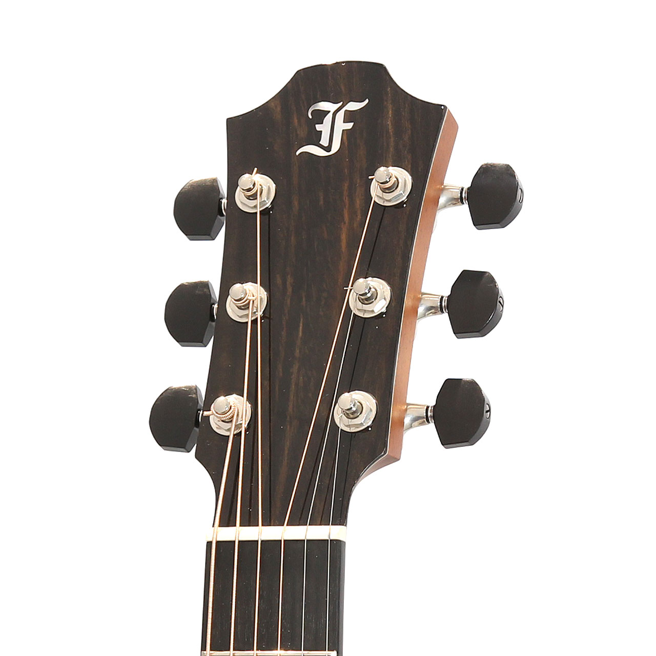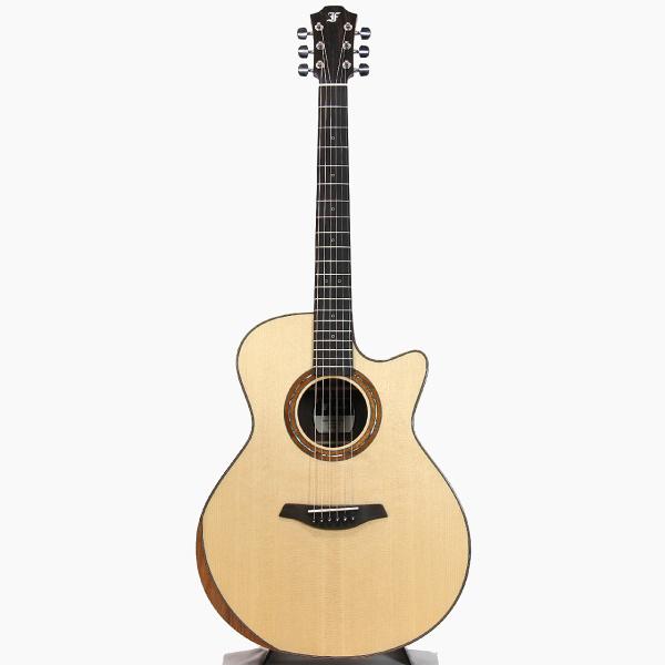 豊かな生鳴りを楽しめるグランド・オーディトリウムのボディを元に、トップ材はAAAグレードのシトカスプルース、サイド&バック材はAAグレードのインディアンローズウッドを採用し、こちらも同じくFG01と同じハワイアンコア材のBevel Duoが施されております。また、ロゼッタのデザインはPremium solid koa and abalone ringとなっており、美しいハワイアンコア材とアヴァロンの美しいラインが大変魅力的なルックスとなっております。その他スペックは、マホガニー材ネック、エボニー材指板&ブリッジ、ナット幅は45mm、GOTOH 510ペグの仕様となっております。