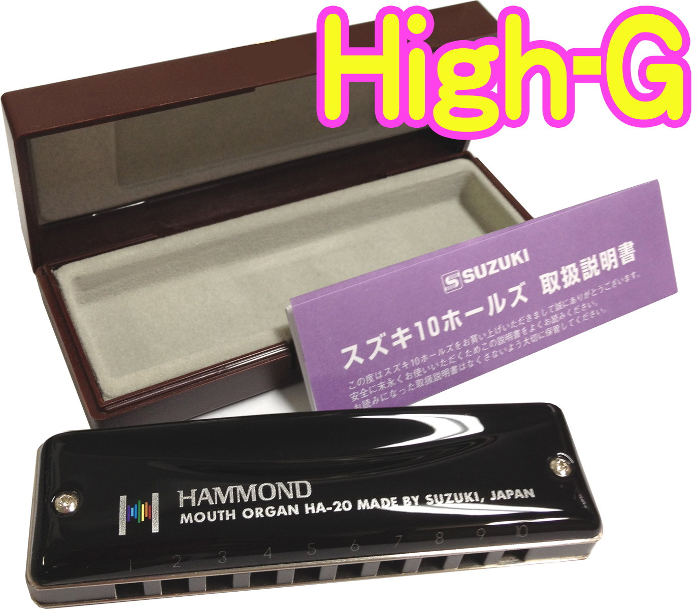 SUZUKI スズキ High-G調 HAMMOND HA-20 ブルースハーモニカ 10穴 ハーモニカ 日本製 テンホールズ ブルースハープ型 ハモンド 黒色 メジャー マウスオルガンHi-G 10holes blues harmonica mouth organ japan リード 楽器