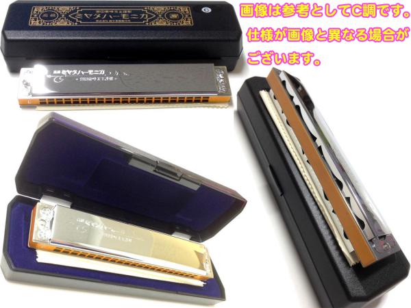 ハーモニカの豆知識ハーモニカには色々な種類がありますが、上下2つの穴から同じ音の出る複音ハーモニカ(トレモロハーモニカ)が日本では一番一般的に使われています。ひとつの音に対してふたつの音が鳴っていることになりますが厳密にいえばそのふたつの音は微妙に違うのです。その微妙な音の違いが心地よい音色をつくっているのですね。また音の配列はピアノの鍵盤のようにド、レ、ミ....と順番には並んでいません。それは一番合理的に演奏できる配列として考えられており、その結果、表現能力が高められソロ演奏まで出来る楽器として成り立つのです。穴の数は21穴、22穴が主流です。穴が多い物は30穴くらいまであり、お値段も高く音域も広くなりますのでそちらの方が良いように思いますが、音域の広い分それだけ演奏も困難になります。消耗する部分もございますし上達すれば2本、3本と欲しくなるものです。まずは欲張らず21、22穴から始めてみて下さいね。ちなみに幼稚園や小学校で演奏したハーモニカも複音ハーモニカの仲間で合奏に適したシングルハーモニカと言います。こちらは穴は1列になっておりひとつの音にひとつの音がなります。このようにハーモニカは小さいお子様からご年配の方まで広く愛用頂いております。複音ハーモニカは童謡や歌謡曲などを演奏される場合が多く、老人ホームや同好会などでも多く利用されております。楽譜は数字で書かれており音符が読めなくても感覚で演奏される方が多いのでお気軽に始めて頂けます。調子(キー) は沢山種類があり、メジャー(長調)とマイナー(短調)合わせて24本のハーモニカがありますが、マイナーなどはあまり使用されませんし、必要によって揃えていくものですのでご安心下さい。まずは1本から。演奏されたい曲に合わせてお選び頂くのですが、なんとなく始めてみたい方、何がなんだかさっぱり分からない方、プレゼントにちょっと...という方々にはC調がおすすめです。日本の童謡にはC調の曲が多いですし、教室、教本などでも、最初に使用するのが多いのはC調です。教本があれば一人ででもぼちぼちと練習できるのではないでしょうか。以上のような事は複音ハーモニカの教本で紹介されています。お近くの本屋さんでも教本は手に入るかもしれません。今はインターネットで少し調べれば出てくる情報もありますので、分からないことがあれば調べて見て下さいね。その他、ご不明な点やご要望などがございましたらお気軽にメールでお問い合わせ下さい。