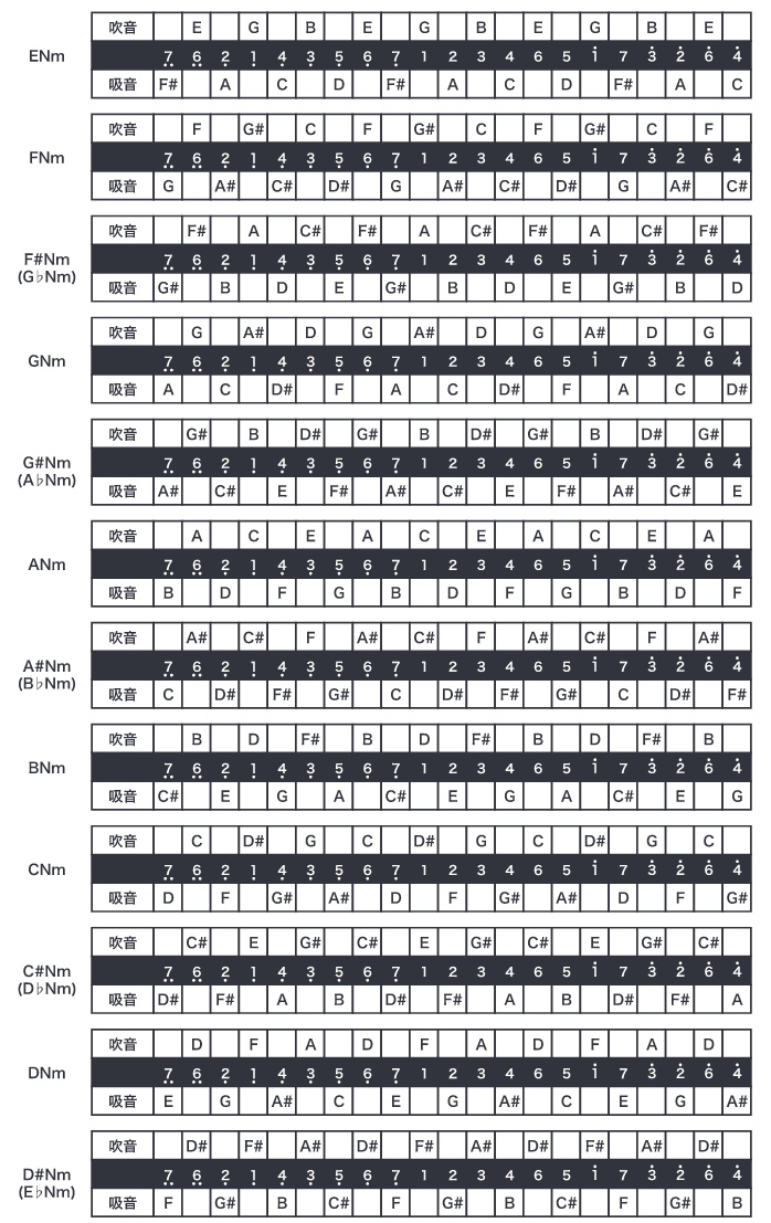 こちらは【ナチュラルマイナー F♯Nm調】です。