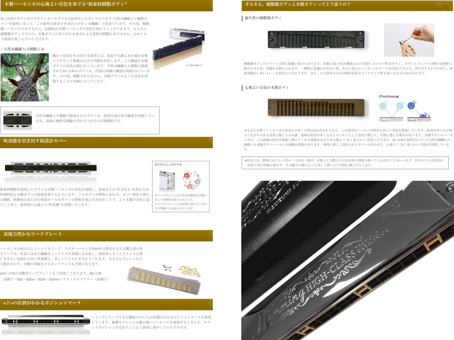 SUZUKI スズキ SU-21W D♯Nm D♯ ナチュラルマイナー 複音ハーモニカ 21穴 高級ハミング 日本製 ダブルリード トレモロ ハーモニカ 楽器 HarmonicaNm Tremolo 天然木繊維入 樹脂ボディ 鈴木 made in japan