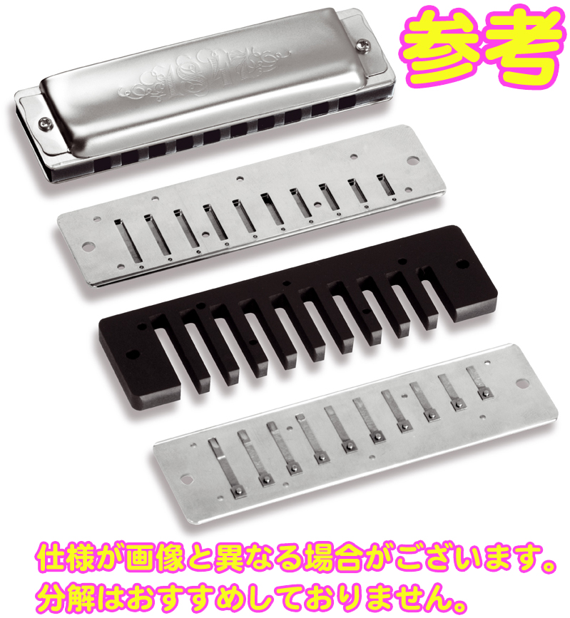 HOHNER、スズキ、トンボのハーモニカには基本的にはステンレスリードはなく、ブラスリードが使用され、長年の劣化や耐久性はまずまずのものであることはハーモニカ奏者であればご存じだと思います。ブラスリードとステンレスリードの違いとしては耐久性が高いだけではなく、倍音豊かで迫力のあるサウンドが得られることが特徴です。劣化しにくいですのでそれだけピッチの安定感もあります。