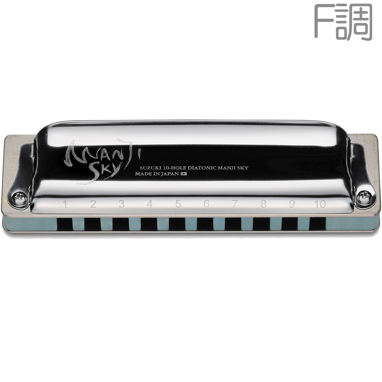 ▼通常のマンジとの違い *通常のマンジ...力強い吹心地。ヘビーなブルースやロックなど、力強さや雄大さを表現したい場合にお勧めです。じっくりと聴かせたいといった曲で存在感を発揮。 *マンジスカイ...軽やかな吹奏感。スズキ10ホールハーモニカの中で最も軽やかな吹き心地と音色を追求し、新たに設計したリードを使用しています。特に10ホールハーモニカでよく使われる中低音域を演奏する際に、その音色の特長を感じられることだと思います。
