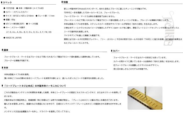 TOMBO トンボ 1210 Low-F フォークブルース マークII 10穴 テンホールズ ハーモニカ ブルースハープ FolkBlues Mark-II Lo-F 北海道 沖縄 離島不可Blues Harmonica LF Low F 10ホールズ 20音 楽器 木製ボディ
