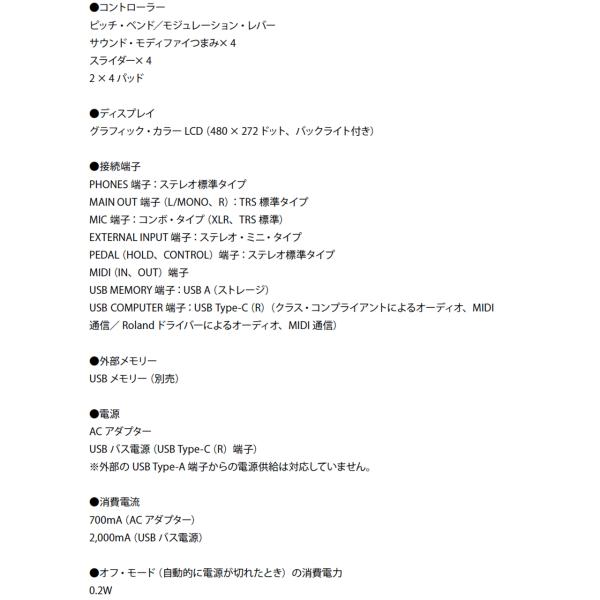 また、演奏性を向上させるため、FANTOM-0などで採用しているキーボード・ユニットを採用。
