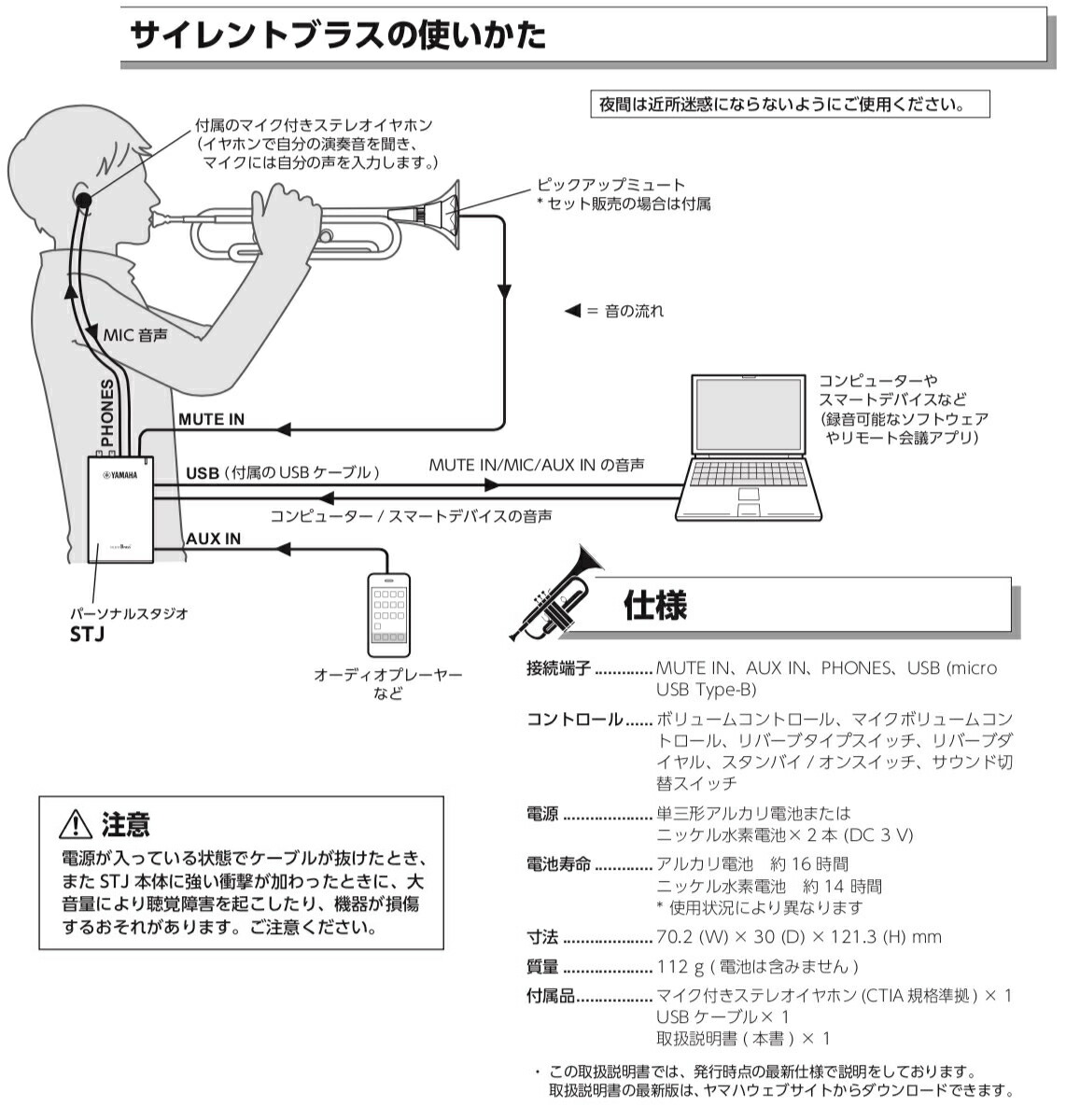 ■サイレントブラス SB7J 音を小さくしイヤフォンできいて練習ができます。