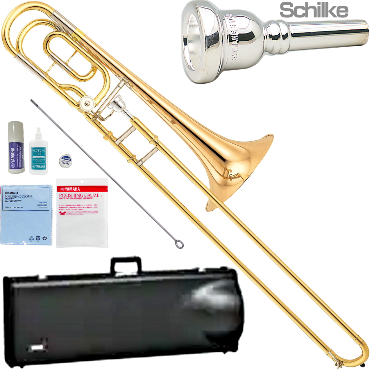 ■商品名  : YBL-421G バストロンボーン ゴールドブラスベル 太管 シングルロータリー Bass Trombone Schilkeマウスピース セット K 北海道 沖縄 離島不可