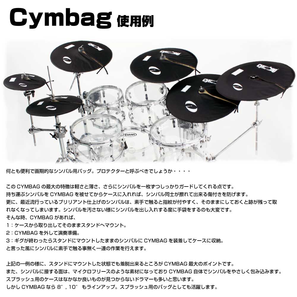 しかしCYMBAGなら 8″, 10″ もラインアップ。スプラッシュ用のバッグとしても活躍します。