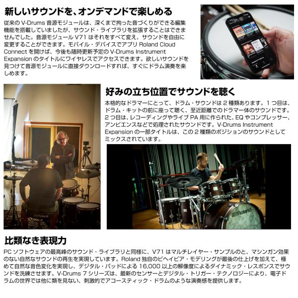 フラッグシップ音源モジュールV71と進化したパッド を搭載した、スタイリッシュなV-Drums 7シリーズのドラム・キット