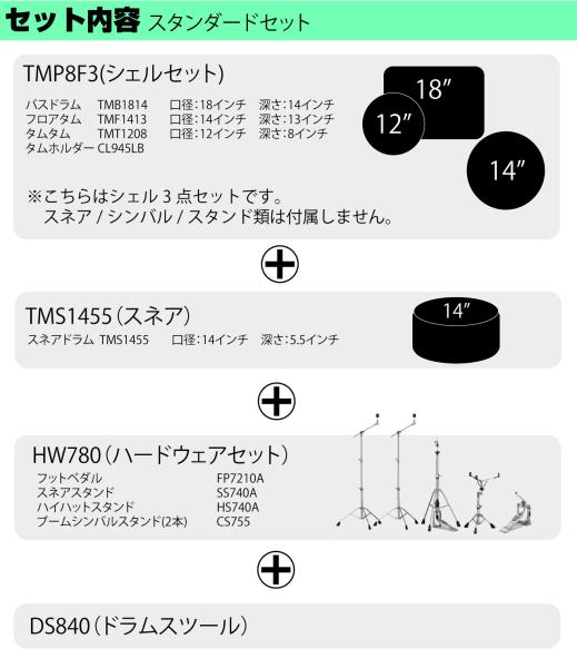 トッププロの要求に応える高い演奏性と音質を兼ね備えたドラムセット!18インチバスドラムのコンパクトキット!