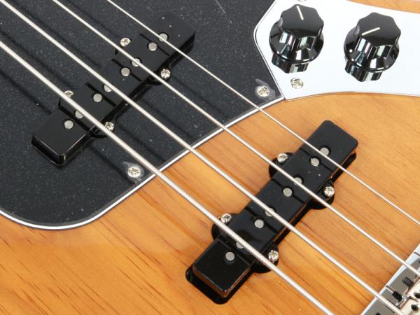 このモデルのボディには今回から新たに採用されたローステッドパイン材を採用しネック、フィンガーボードにはメイプルを採用したジャズベースです。