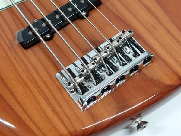 ローステッドパインボディ、メイプルネック、メイプル指板のパッシブ5弦ジャズベースです。
