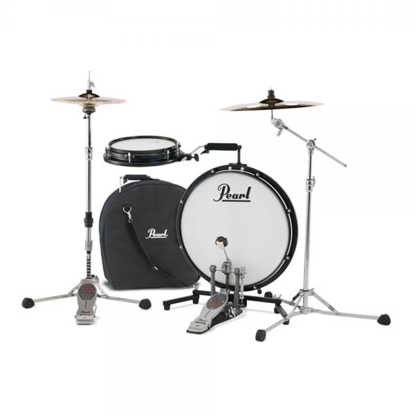 チューニングが可能な18インチ(バスドラム)と10インチ(スネア)のドラムをパッケージした非常にポータブルなドラムキット。 各ドラムには通常のドラムヘッドが採用されており、各ドラムをチューニングして、優れたタッチに加えて、タイトなバスドラムサウンドとキレのあるスネアサウンドを実現。 このキットは折りたたんでコンパクトに収まり、付属のキャリーハンドルを使って手軽に運搬できる。 専用のキャリングケースが付属し、さらに、"ADD-ON"キット(PCTK-ADDKIT)を追加すれば、 2タム仕様キットへの拡張が可能となる。 学校、ストリートでのドラミング、小規模なステージのギグに最適。