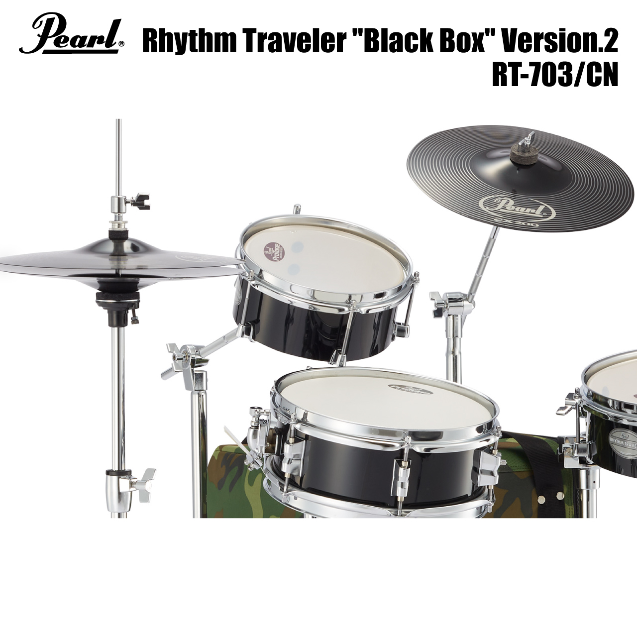Rhythm Traveler Black Box Ver2 RT-703/CN 説明このBOX 一つで、すぐにドラム演奏が楽しめるオールインワンパッケージ「BLACK BOX」。スローンやハイハットスタンド、シンバルまで揃ったコンパクトなデザインは、BOX 型のケースをバスドラムとして活用することで、誰でも手軽にアコースティックドラム・サウンドを体感できます。従来のコンパクトドラムの概念を覆すこの一台が、スタイルと音楽の新しい可能性を提案します。