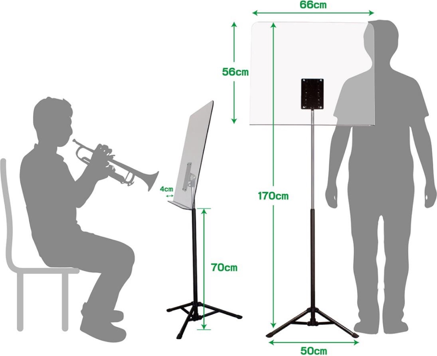 ・ポリカーボネート素材 ・61cm×61cmサイズ ・譜面をのせる台はない、ただのクリアシールド