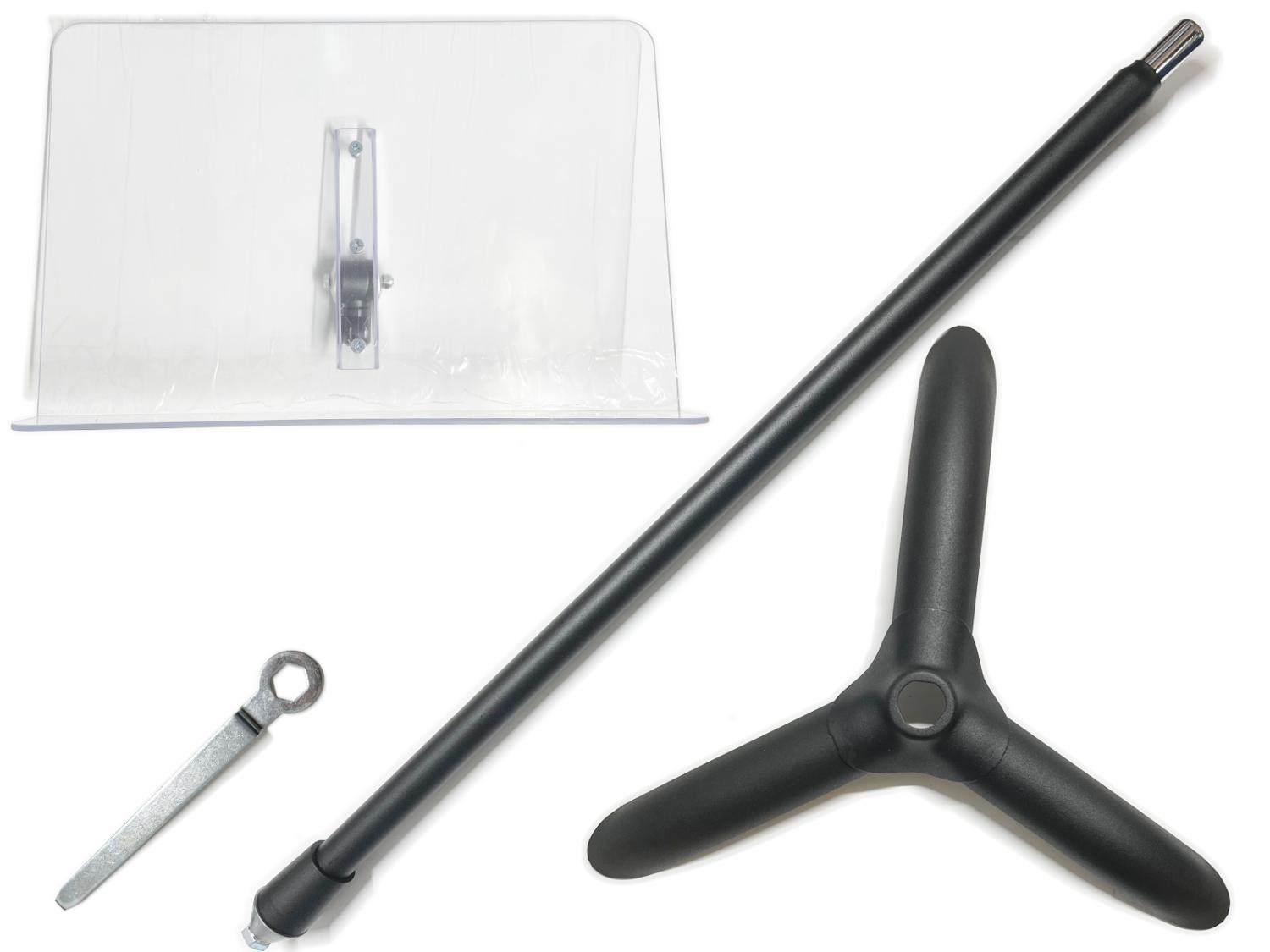 ■客席から出演者や指揮者の視認性が最大になるよう開発された譜面台です。丈夫で耐久性に優れたプラスチック素材を使用しており、透明度はガラスと同等で、ガラスに比べ250倍の強度を持ちます。