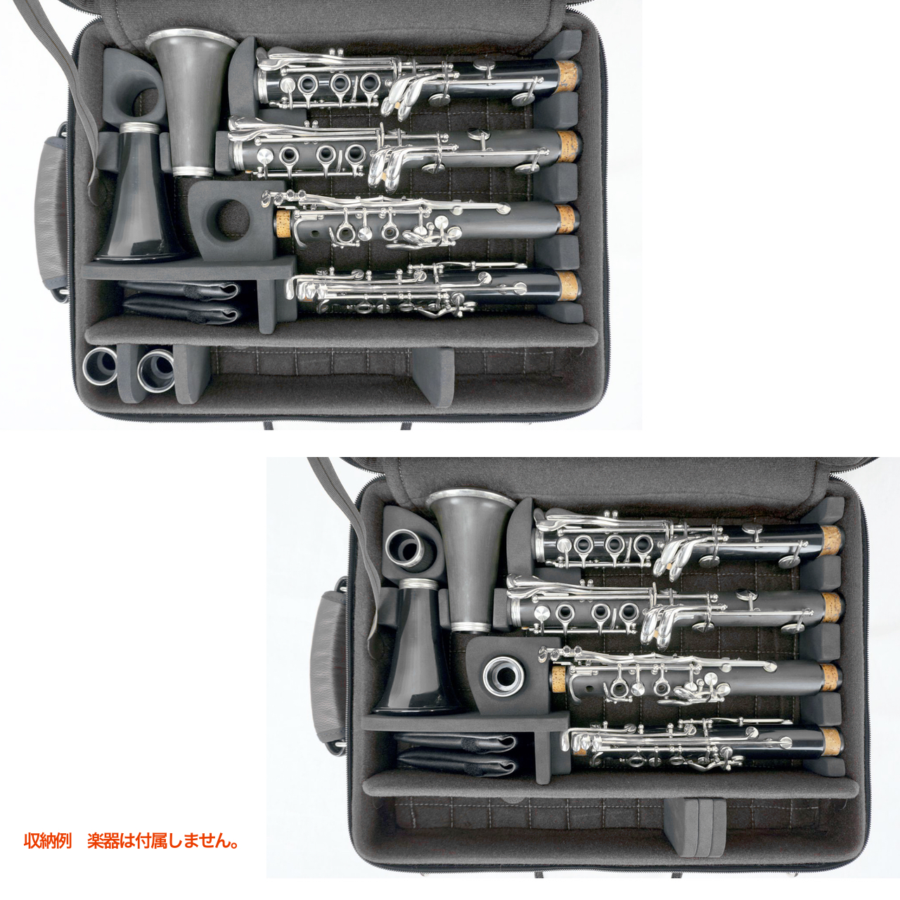B♭クラリネット Aクラリネットを1本ずつ収納するケース。 2本入るダブルケースですが上記2種類を1本ずつ収納するもので同機種2本は収納できません。