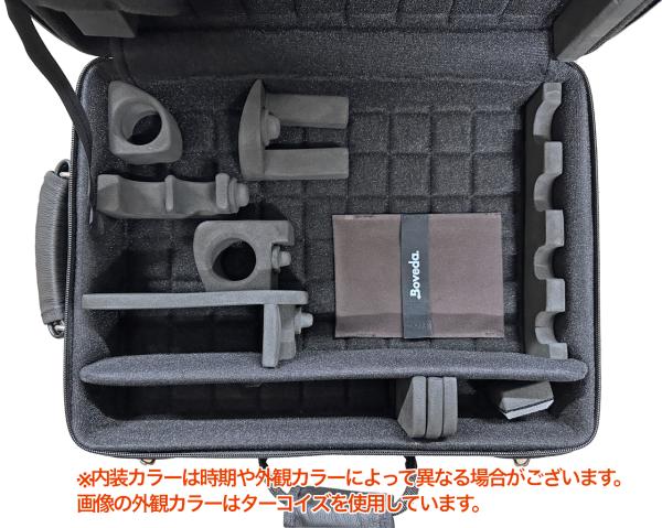 プロとして活躍される多くの管楽器奏者の方々にもご愛用が多い、ケースとしてはちょっと高めの高級ケースですね。ファイバー製セミハードケースで、その頑丈さと品質の高さに定評があります。楽器の為に研究された緩衝材で管体や細かな部分の凹み・曲がりを防ぎます。