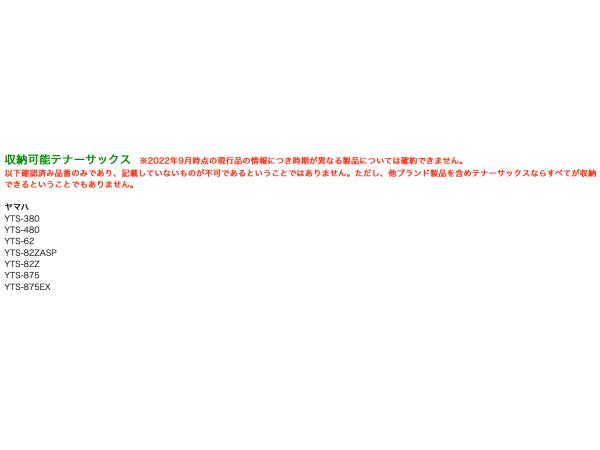 以下確認済み品番のみであり、記載していないものが不可であるということではありません。ただし、他ブランド製品を含めテナーサックスならすべてが収納できるということでもありません。