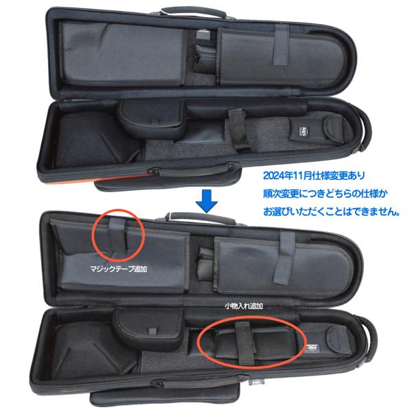 内装にはマジックテープ式のベルトを搭載し楽器をしっかりと固定出来ます。