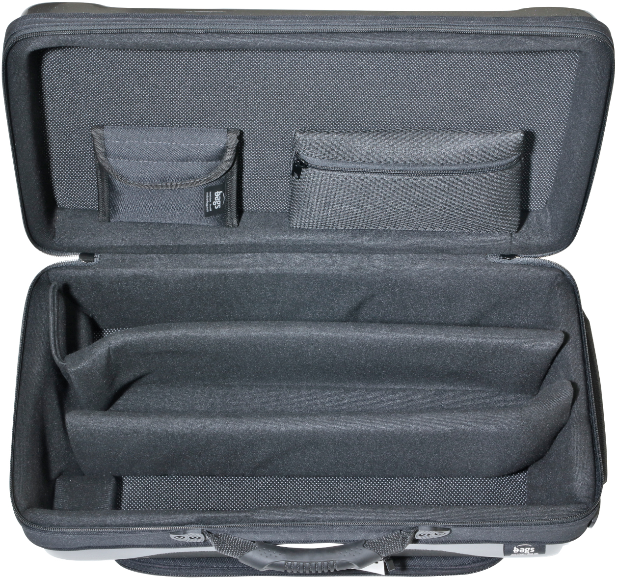 内装は中央にゆったりとした小物収納スペースを確保。ミュートやお手入れ用品は勿論、ピッコロトランペットも収納可能。