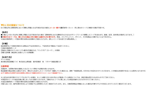 ※上記3点の送付物のうち1つでも欠けている場合、もしくは購入日から6か月以上が経過している場合については、保証交換は受けられませんのでご了承ください。 ※保証内のリードの返品交換に関しましては1回限りとなります。交換されたリードに関しましては保証対象外となりますのでご了承ください。 ※返品交換希望リード発送の際の送料はお客様のご負担となります。 ※輸入品につき、国内在庫の状況により交換までにお時間をいただく場合がございます。また、交換希望商品が廃版となった場合は代替モデルでの対応とさせていただく場合がございます。