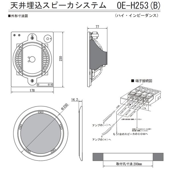 MASSIVE マッシブ OE-H253 (B) ブラック ◆ 天井埋込型スピーカー・シーリング型