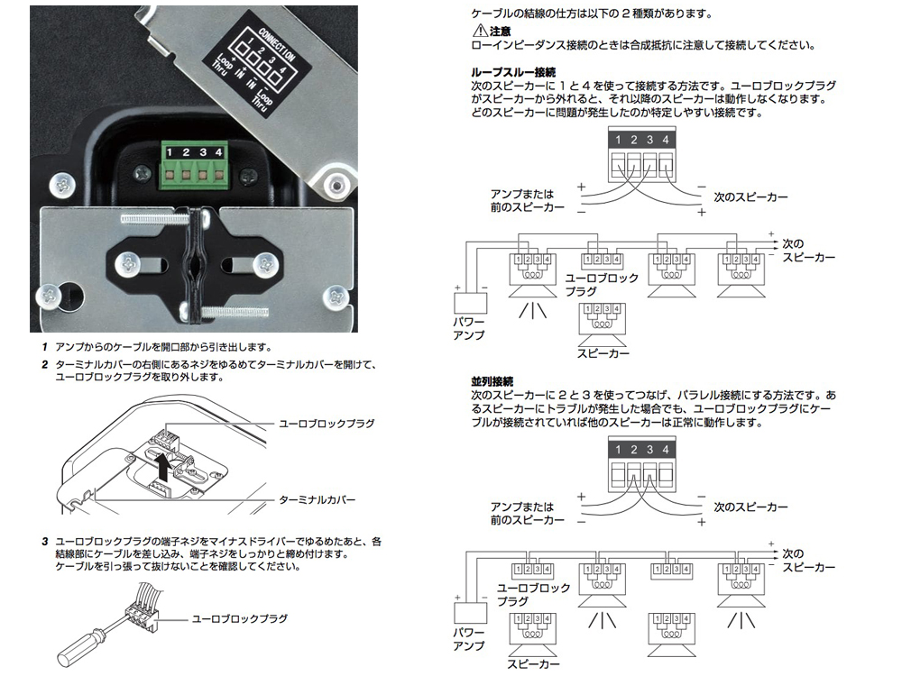 ユーロブロック(4P)×1(インプット:+/-、ループスルー:+/-) |