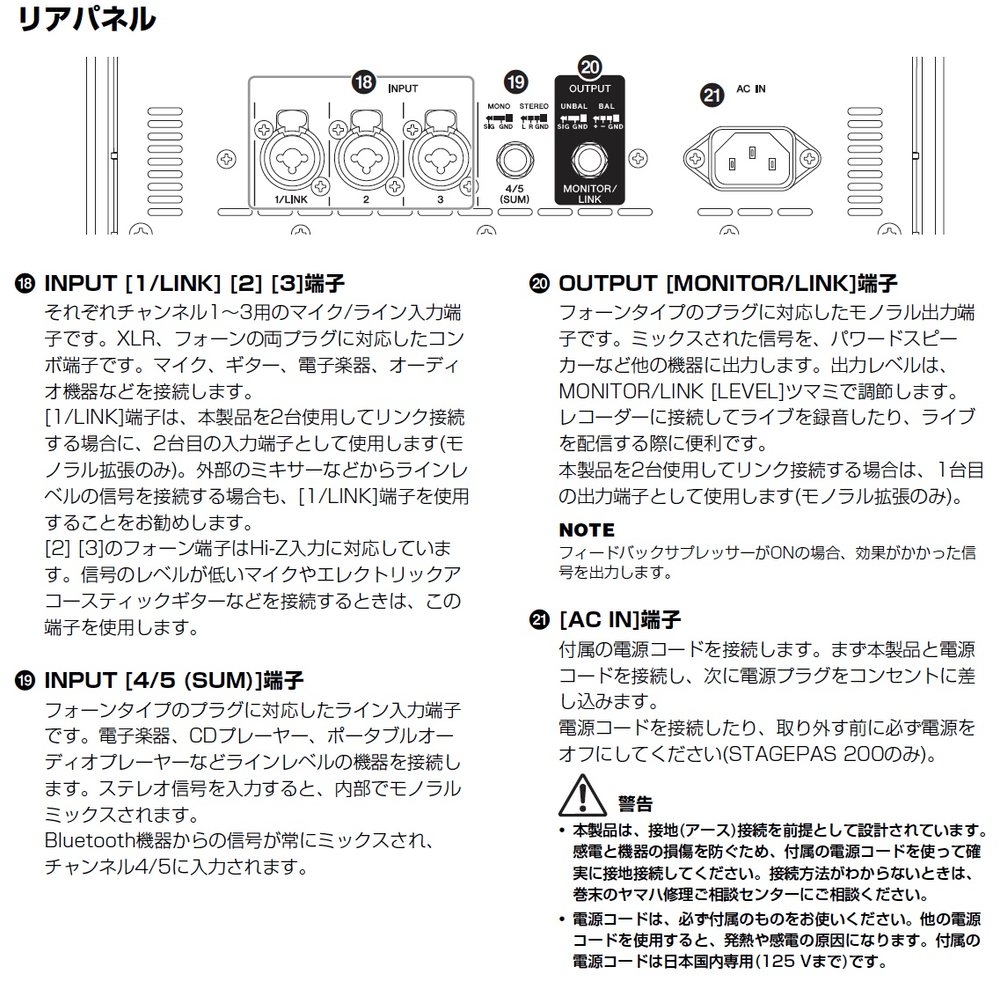 ※『STAGEPAS200BTR』には1つ同梱、BTRがつかない『STAGEPAS200』は別売です。