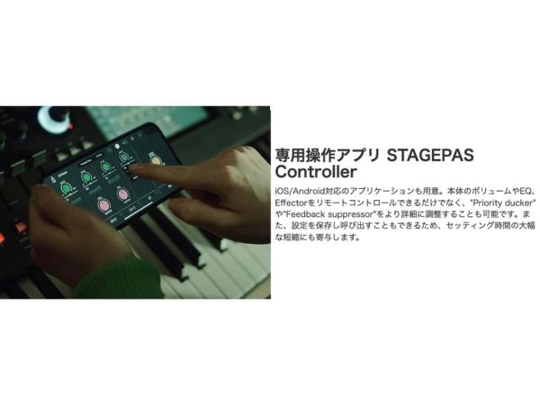 ・専用アプリケーションSTAGEPAS ControllerでiOS/Android端末から遠隔操作可能