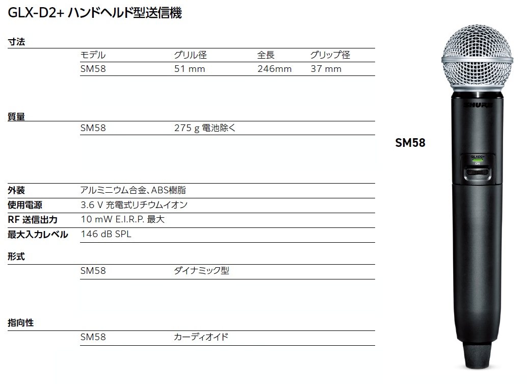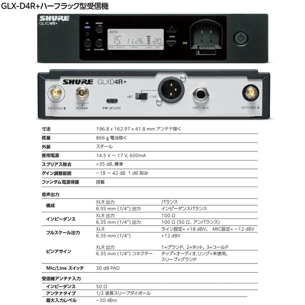 [ 商品説明 ] ◆GLX-D+ デジタルワイヤレスシステムの仕様