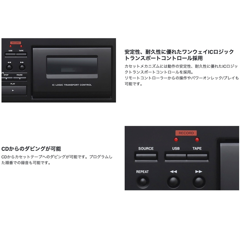カセットテープの録音再生、CDの再生に加えて、USBメモリーでの録音再生に対応 ◇ CD-A580v2
